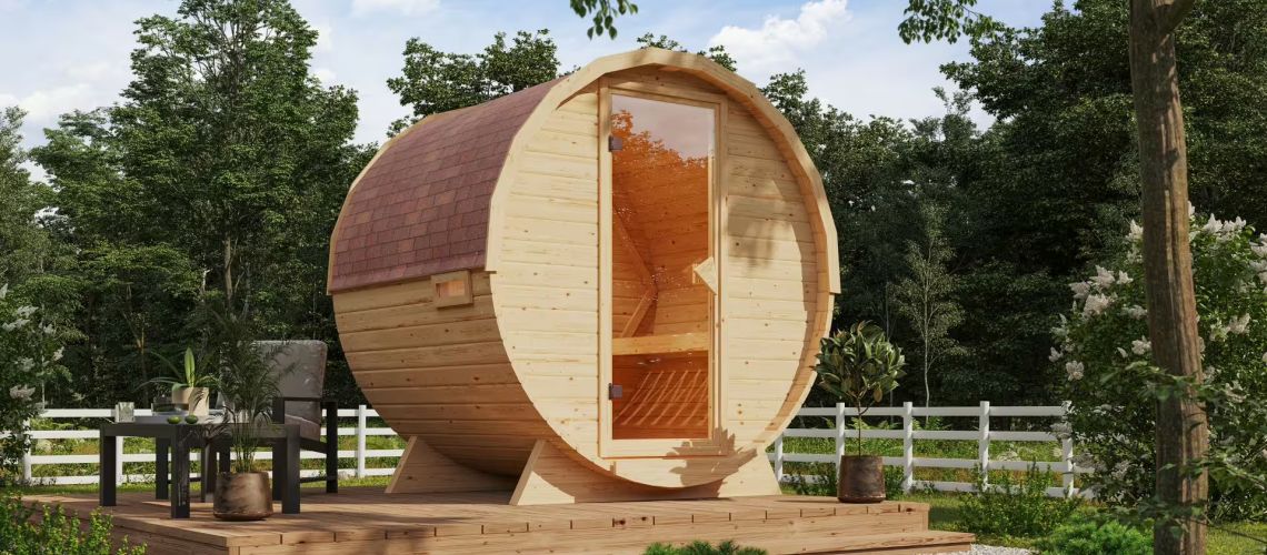 Karibu Fasssauna 1, 38 mm- inkl. 9 kW Bioofen externe Steuerung