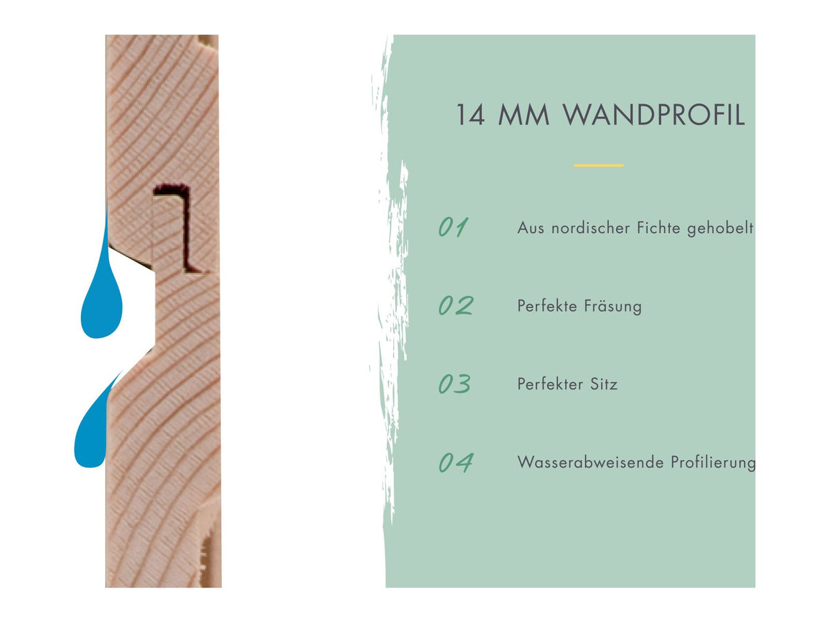 Produkteigenschaften 14 mm Karibu Gerätehaus Dahme: