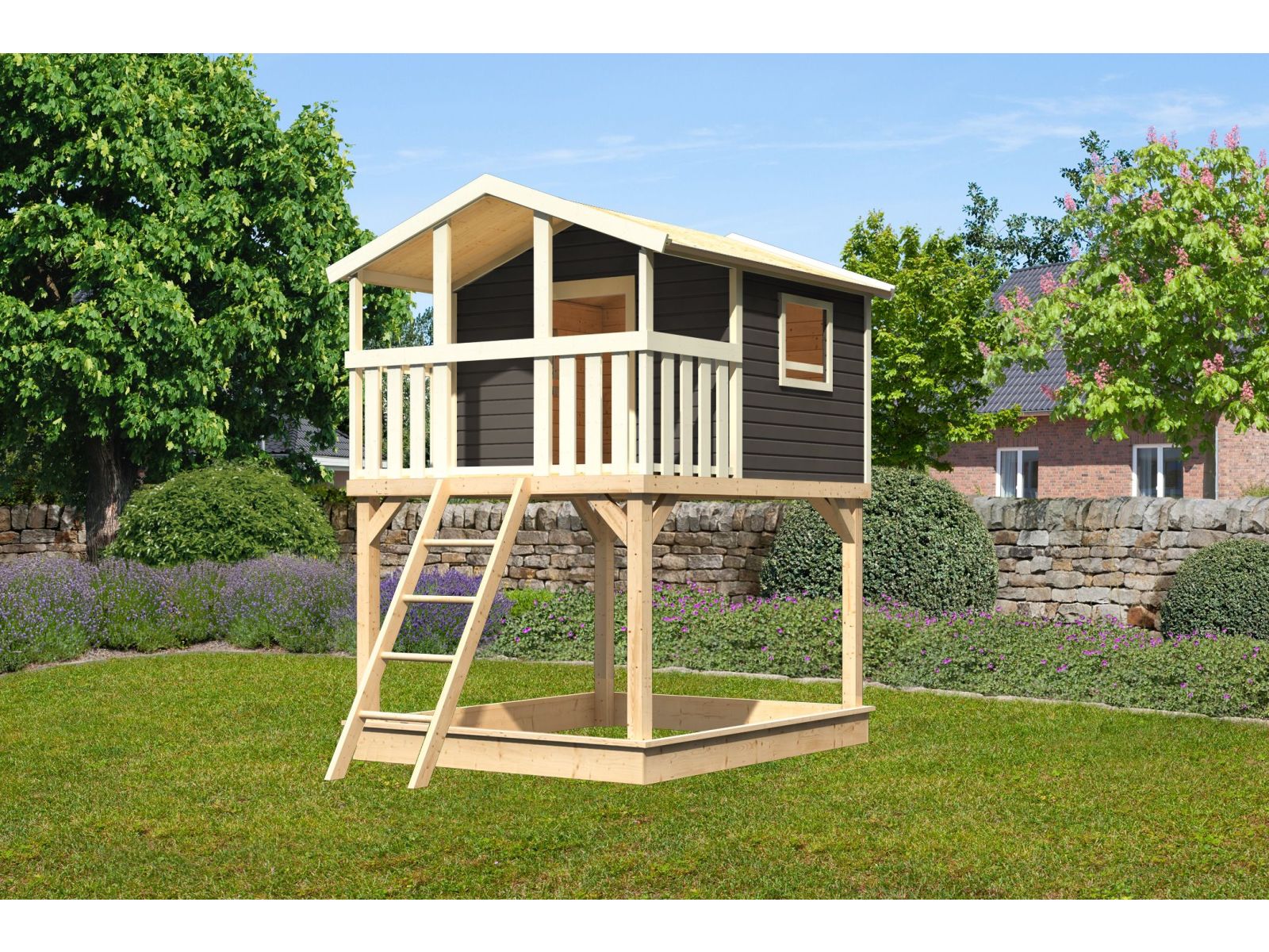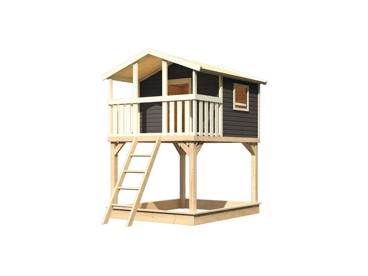 - Das große Spielhaus Benjamin von Karibu in terragrau bietet viel Platz zum spielen und toben.