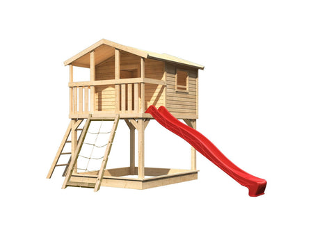 Karibu Stelzenhaus Benjamin natur mit Netzrampe und Rutsche in rot